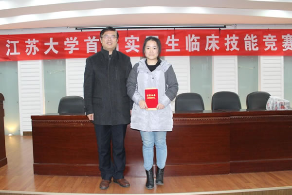 第一届实习生临床技能竞赛”活动,竞赛分初赛和复赛。初赛与本学年第一次临床实习教学检查同步进行,在各附属医院、教学医院及实习医院中,经专家考核选定27家医院的60名实习同学参加复赛,复赛于11月28日在北固校区隆重举行。经过理论考试、临床技能操作三站循环测试和专家面试三个赛程。采用随机抽签、现场亮分与逐步淘汰方式,经过激烈角逐,最终产生一等奖3名,二等奖6名,三等奖9名。七位评委为三等奖得主分别颁奖,医学部领导和第一临床医学院领导为二等奖得主颁奖,施卫东副校长亲临活动现场为一等奖得主颁奖后,发表热情洋溢的讲话,对这一活动给予充分肯定。