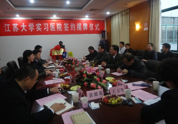 我校医学部常务副主任郑金旭教授,医学部与临床医学院党委朱立新书记,基础医学与医学技术学院原副院长、调研员姜平教授,张家港市卫生局党委副书记、副局长季春郁,江苏澳洋医药物流有限责任公司执行董事、张家港澳洋医院总经理朱宝元,江苏澳洋医药物流有限责任公司投资总监高峥,张家港澳洋医院常务副总经理、名誉院长薛元坤,常务副院长高家彦,党支部书记王玉芳以及医院有关临床科室、教研室负责人出席了签字与揭牌仪式。