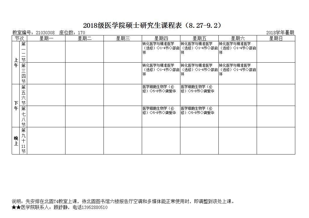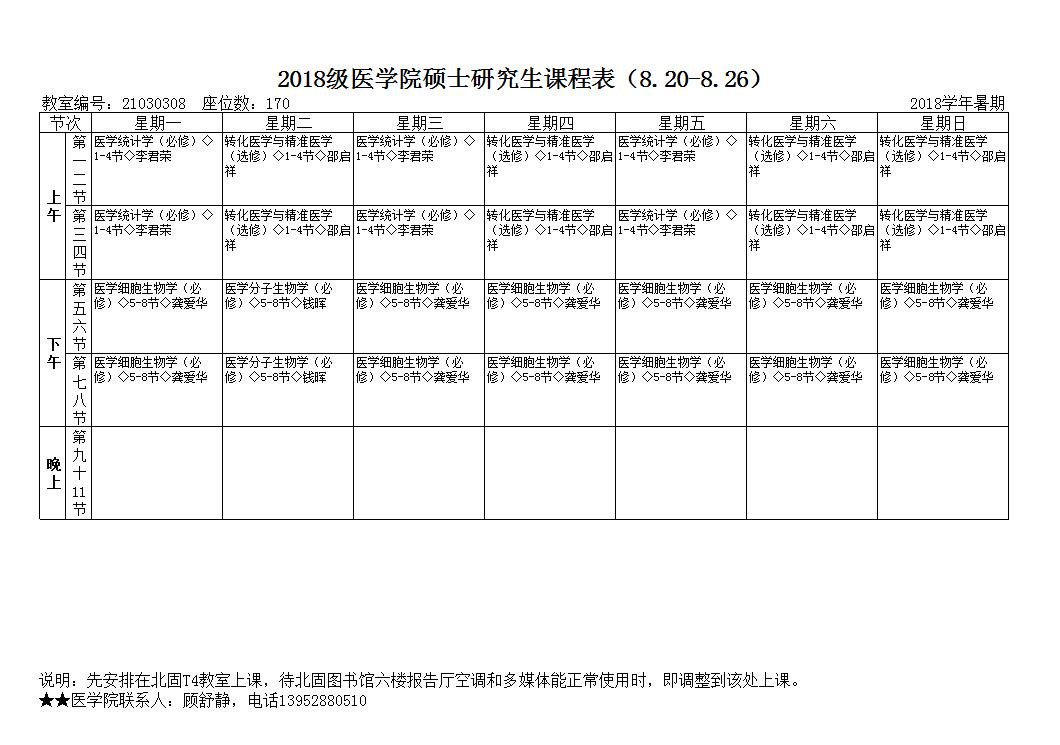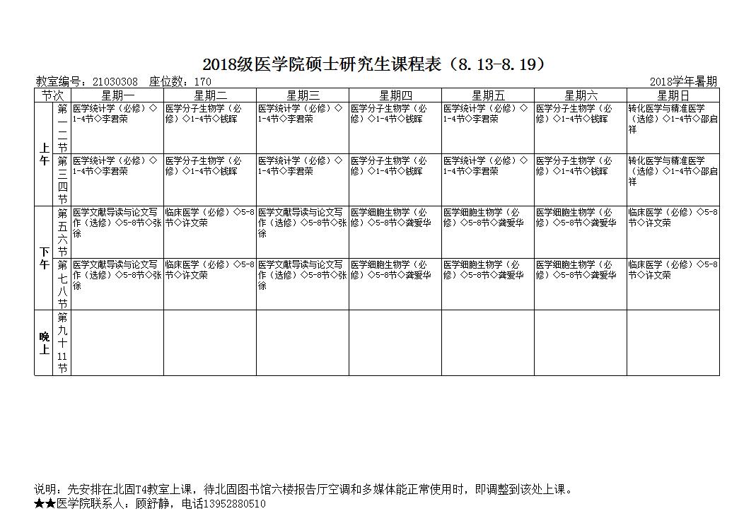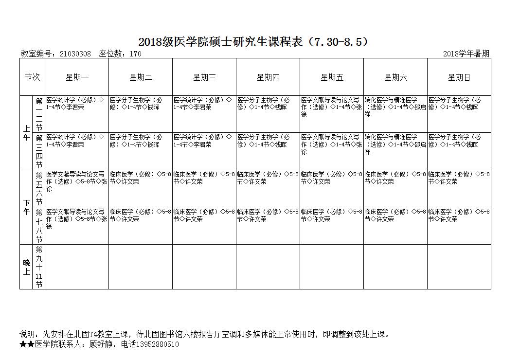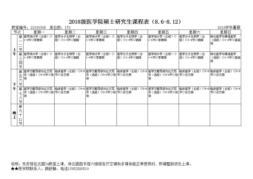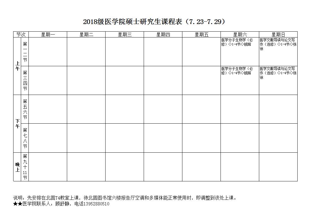 耽美漫画 2018级医学院硕士生2018年7月23日至9月2日课程表
