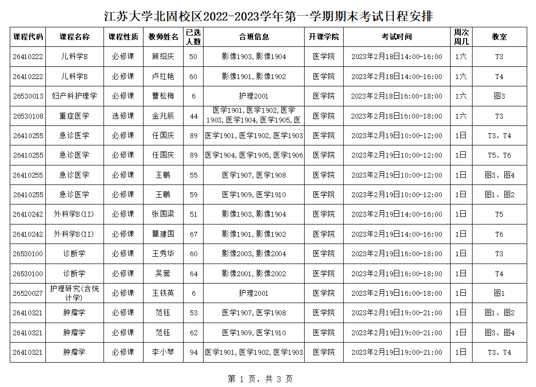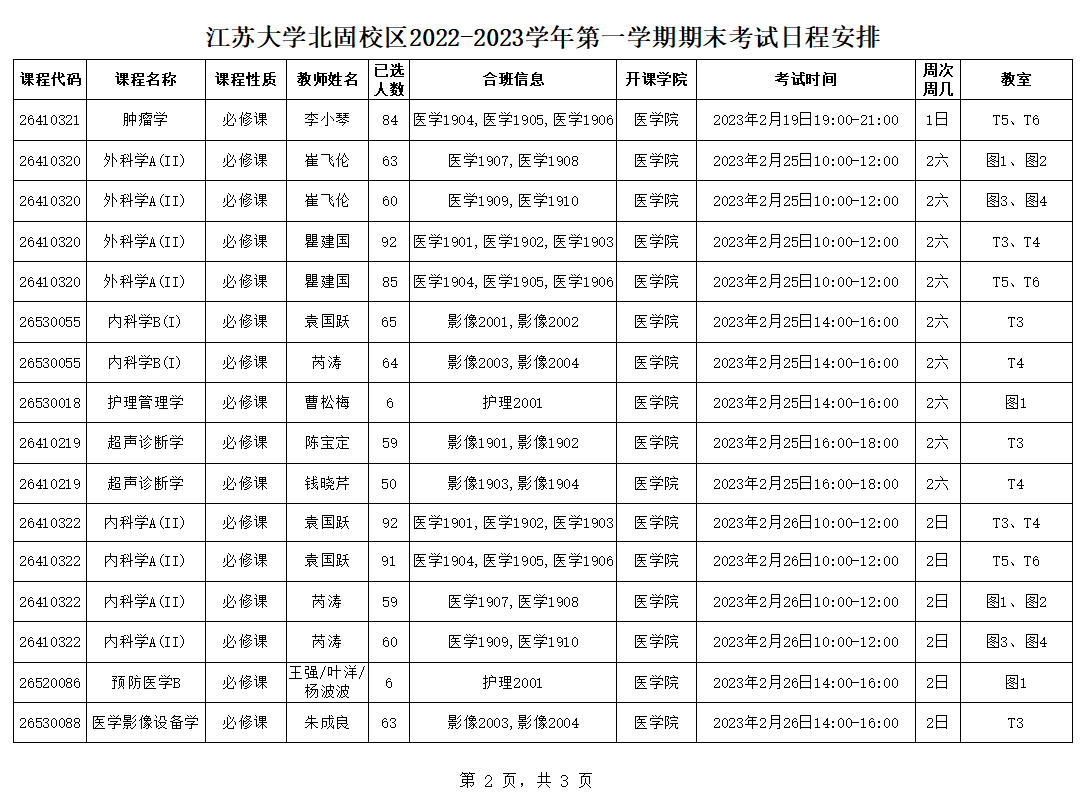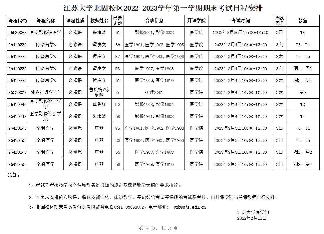 耽美漫画 北固校区2022-2023学年第一学期期末考试日程安排(2.11)
