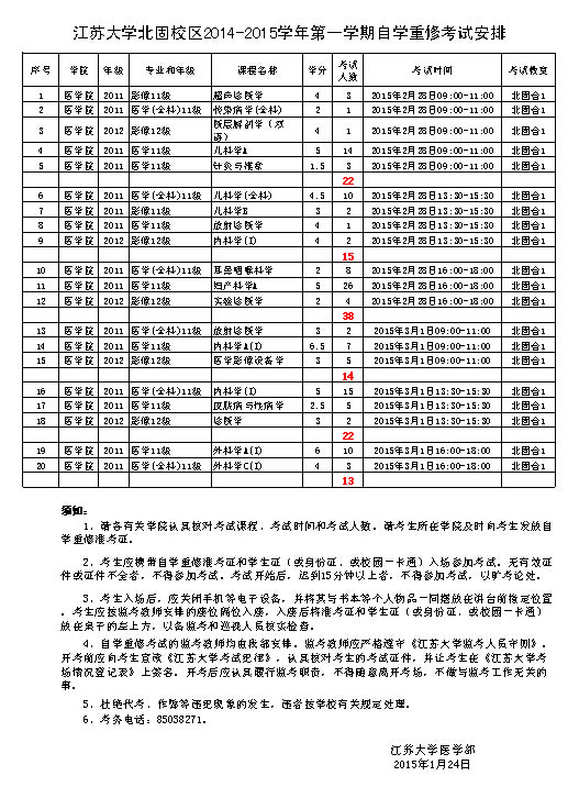 耽美漫画 北固校区2014-2015学年第一学期自学重修考试安排