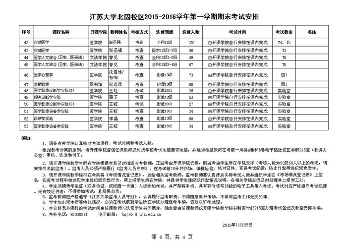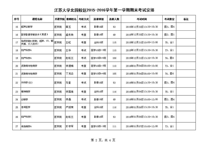 耽美漫画 北固校区2015-2016-1期末考试安排