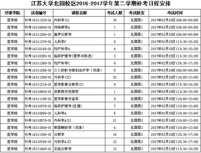 耽美漫画 北固校区2016-2017-2学期补考日程安排及试卷付印单