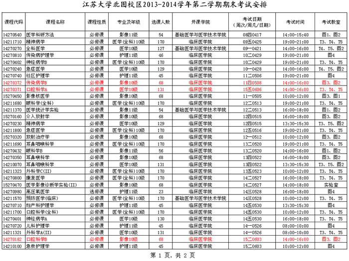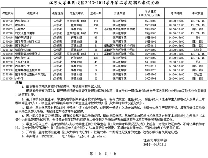北固校区2013-2014-2期末考试安排
