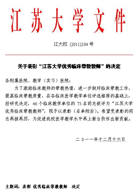 关于表彰“耽美漫画 优秀临床带教教师”的决定