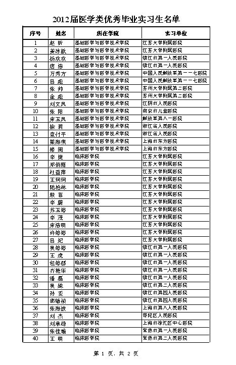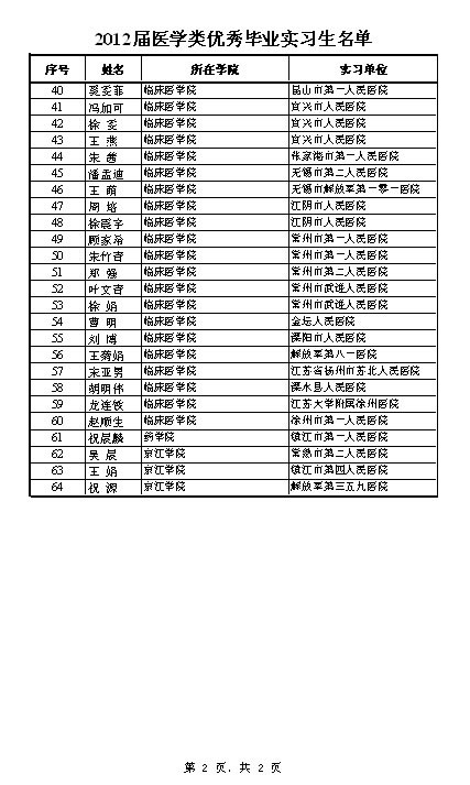 为了更好地调动医学类学生的临床实习积极性,提高临床实习质量,经各实习组民主推荐,实习单位审核,医学部、教务处会同相关学院研究决定,授予赵昕等64名同学为2012年“优秀临床实习生”。(名单附后)