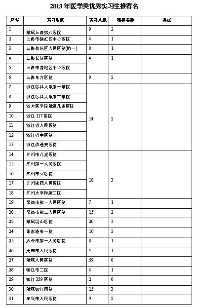 优秀临床实习生评选办法》的文件精神,经研究,决定开展2013年医学类优秀实习生的评选活动。具体如下: