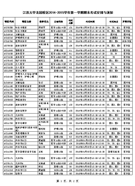 2014-2015-1北固校区考试安排与须知.xls