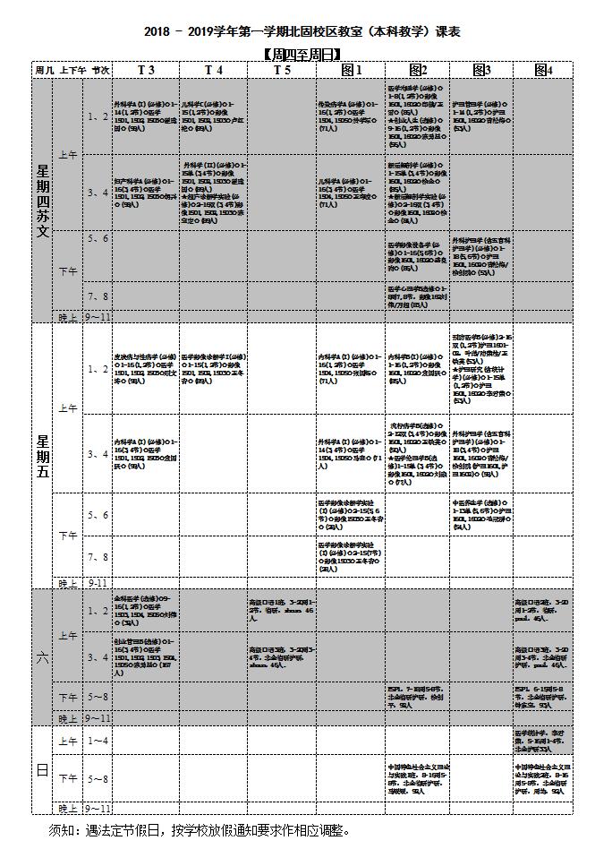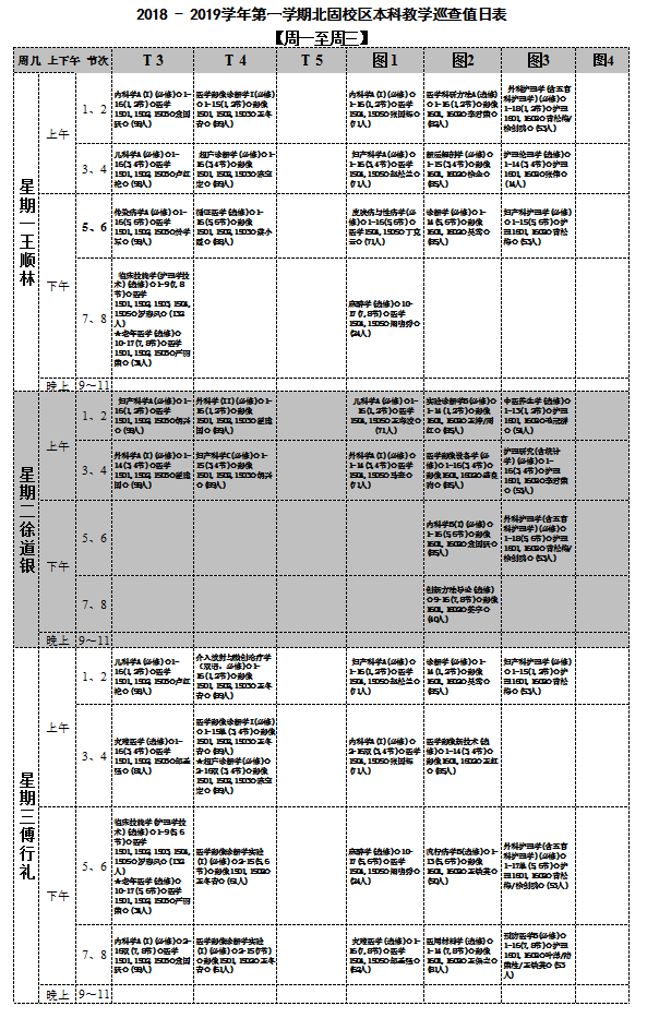 医学部2018-2019学年第一学期北固校区本科教学巡查值日安排表