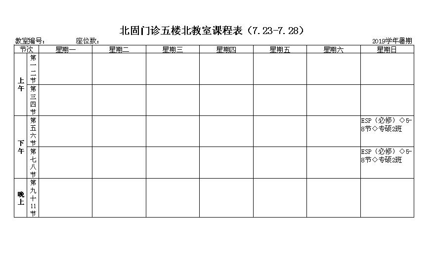 北固校区2019年级研究生暑期课表(门诊五楼北教室)