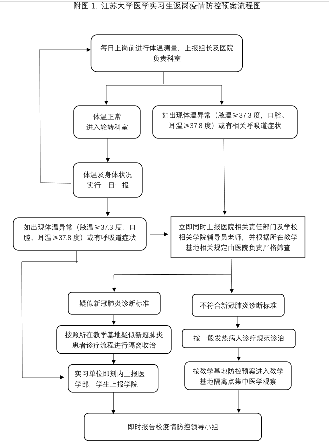 为贯彻落实党中央、国务院、教育部、省委省政府、省教育厅和学校关于新冠肺炎疫情防控工作部署和要求,安全、平稳地度过春节假期,同时又保证实习生实习质量,现就我校医学类实习生春节期间返乡、返岗工作安排作如下要求: